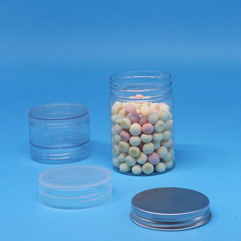 الفراغ بطاقة PET الغذائية الدرجة الأسطوانة الغذائية المستديرة الحلوى الشفافة الجرة المسمار الأغطية المسطحة