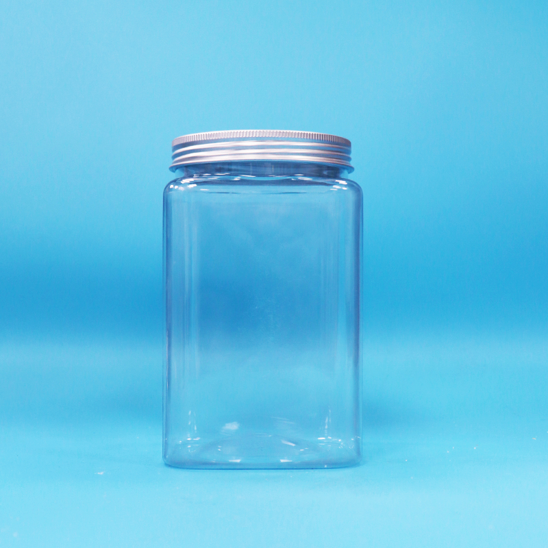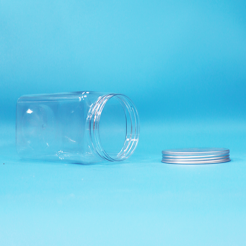 برطمانات حلوى المعكرونة البلاستيكية الشفافة المربعة الخالية من مادة BPA وغطاء ألومنيوم لولبي
