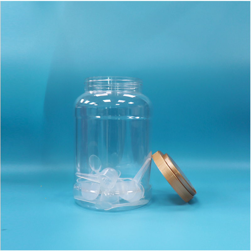 شفافة مستديرة واسعة الفم بي تي بلاستيكي حليب مسحوق ملعقة جرة مقبض قبعة بني