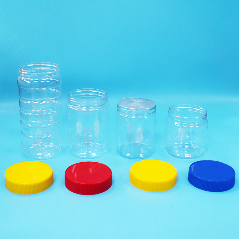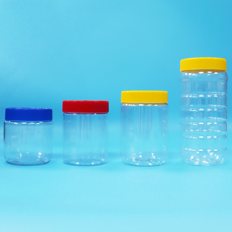 Variety Round Transparent Peanut Butter PET Plastic Jars Screw Flat Lids Food Grade