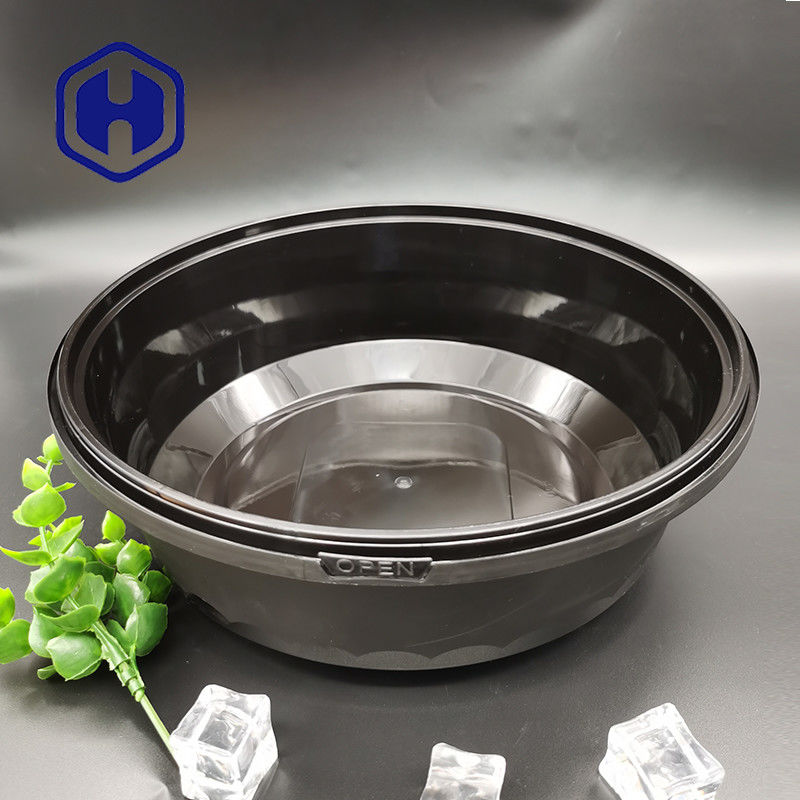 طباعة مخصصة 1100 مللي سلطة فواكه يمكن التخلص منها الغذاء الصف غداء دجاج مقلي مستدير يسلب وعاء بلاستيكي مع غطاء