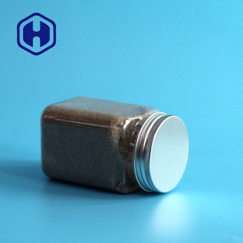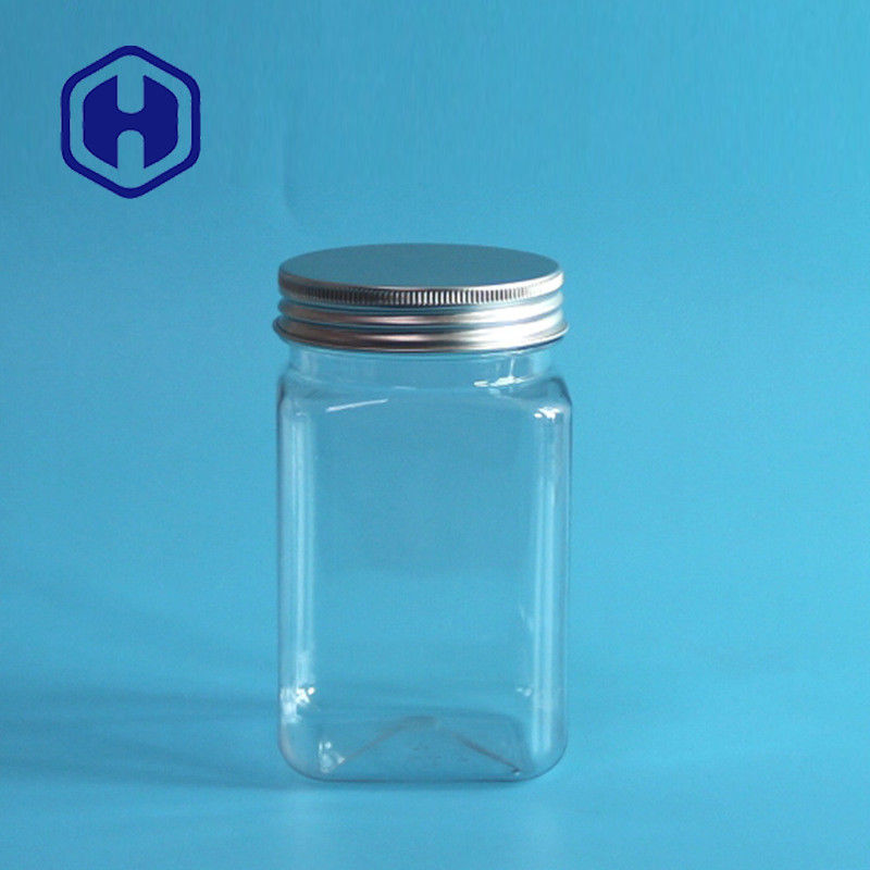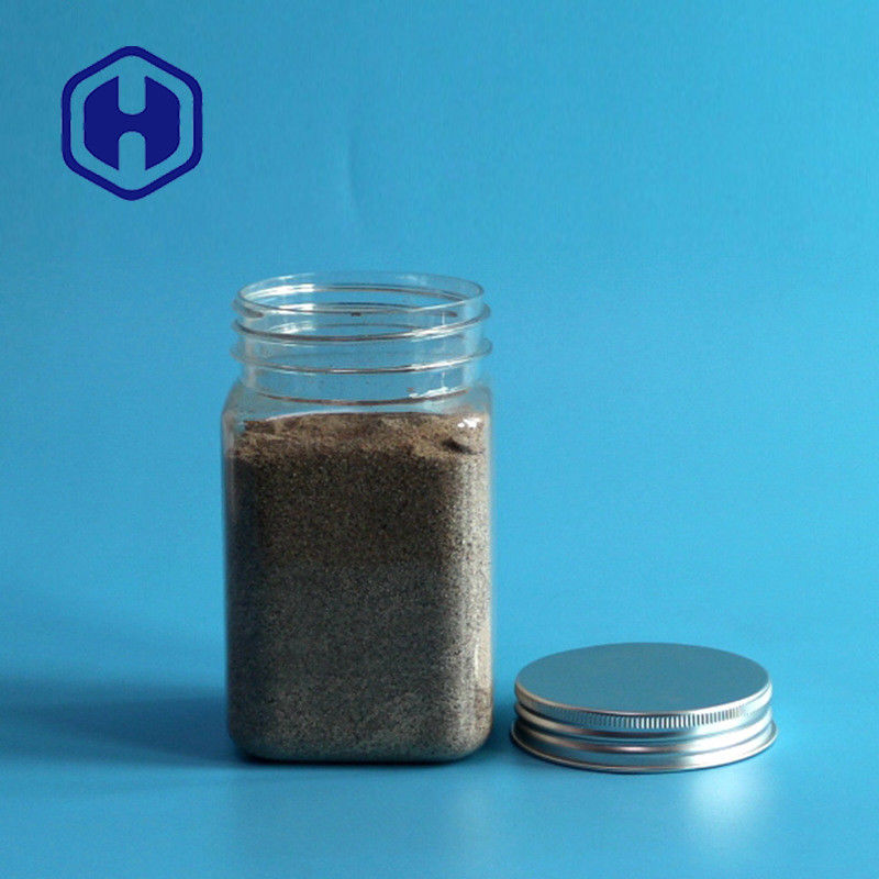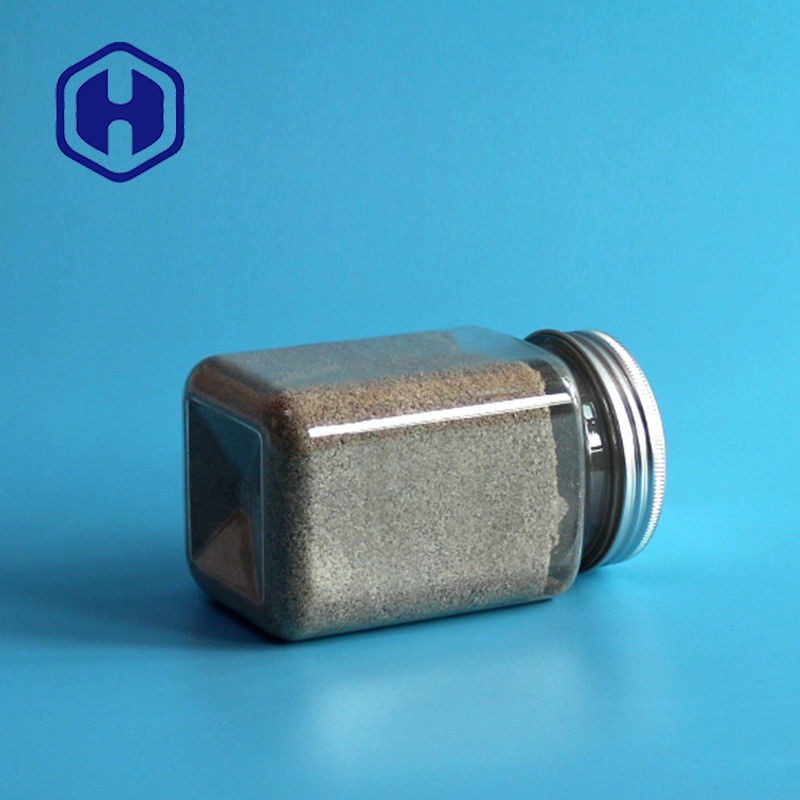 وجبة خفيفة بهارات ذات فم واسع 375 مل جرة طعام بلاستيكية فارغة مربعة الشكل مع غطاء من الألومنيوم
