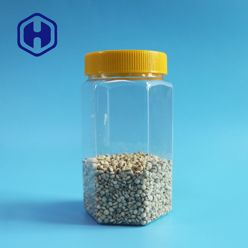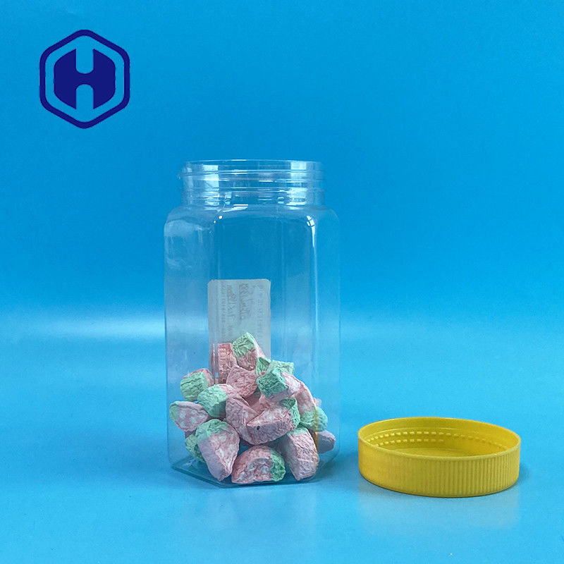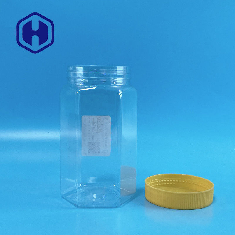 السائبة 670 مل سداسي شفاف واسع الفم PET تغليف أغذية بلاستيكية مع غطاء