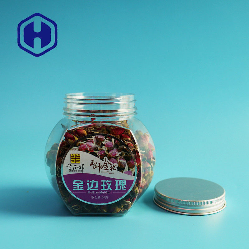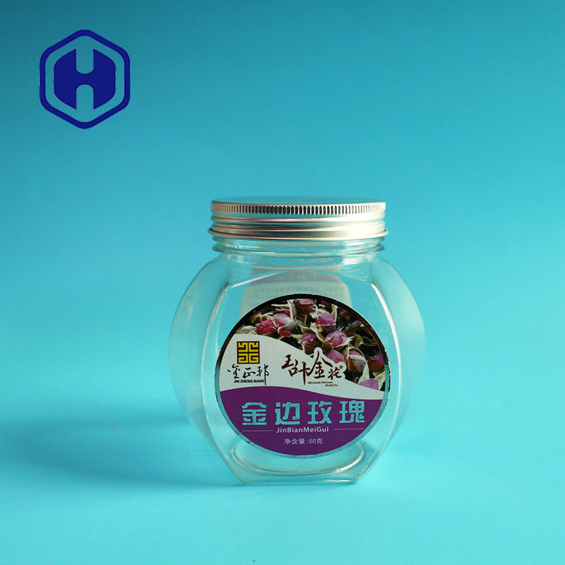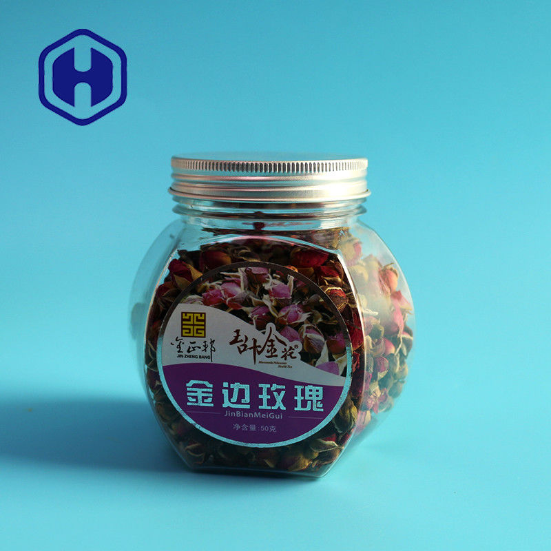 معطرة خاصة الزهور الجافة المكسرات تغليف أغذية PET الجرار البلاستيكية مع غطاء الألومنيوم