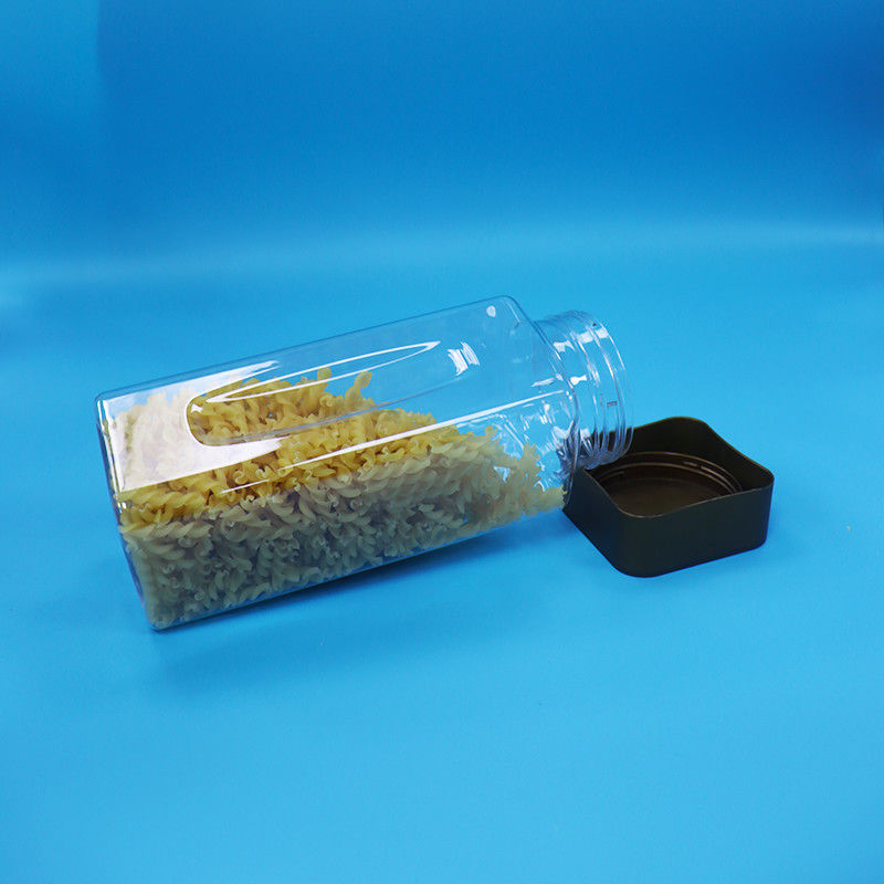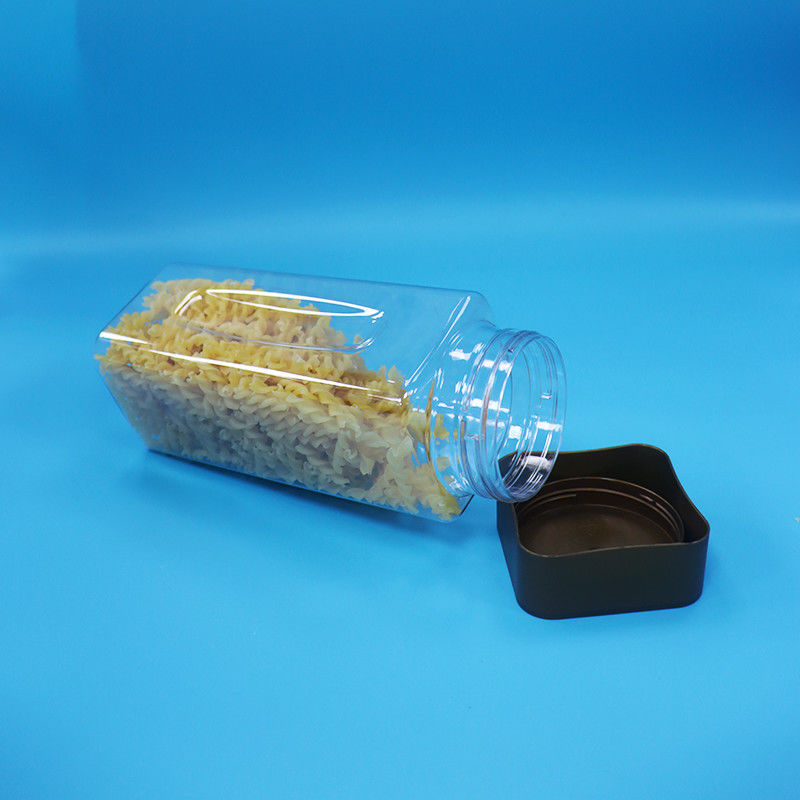فارغ شفافة واسعة الفم مستطيل بي تي بلاستيكي حلوى المكسرات الجرة المسمار غطاء مسطح
